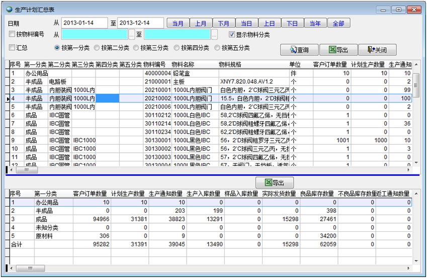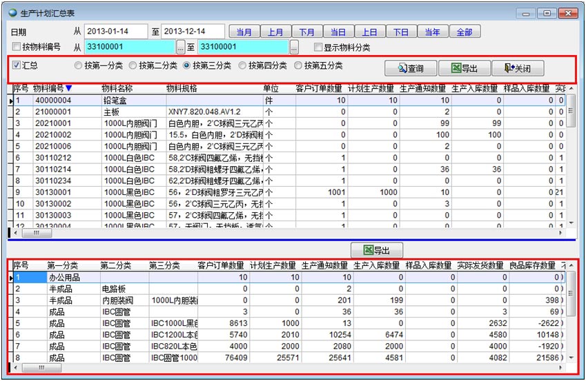 生產(chǎn)計(jì)劃匯總表是生產(chǎn)計(jì)劃的列表,顯示所有符合搜索條件的生產(chǎn)計(jì)劃,并按要求進(jìn)行匯總。