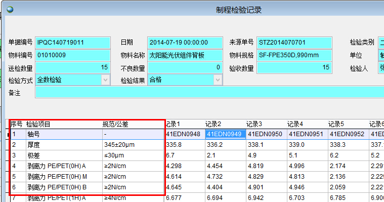 制程檢驗(yàn)記錄表的前3列不會(huì)滾動(dòng)