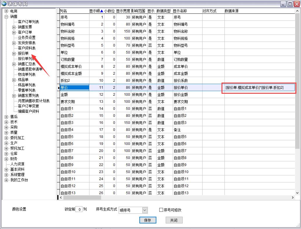 我們希望報(bào)價(jià)單中的單價(jià)是根據(jù)公式自動(dòng)計(jì)算的,公式為:成本單價(jià)*報(bào)價(jià)系數(shù),成本單價(jià)和報(bào)價(jià)系數(shù)都是手工輸入。