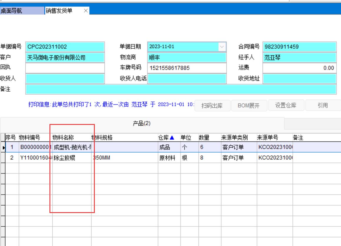 以下圖為例,在客戶訂單中長、寬的數(shù)據(jù)來自物料編碼表,訂購數(shù)量是客戶訂單中手填的,面積套用了計(jì)算公式是自動(dòng)計(jì)算得出的,面積=長*寬*訂購數(shù)量