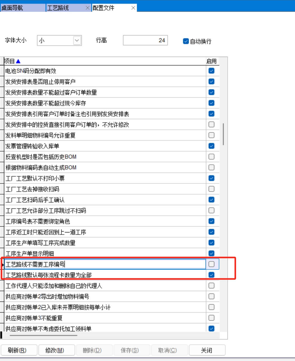 在配置文件中有兩個關于工藝路線的選項