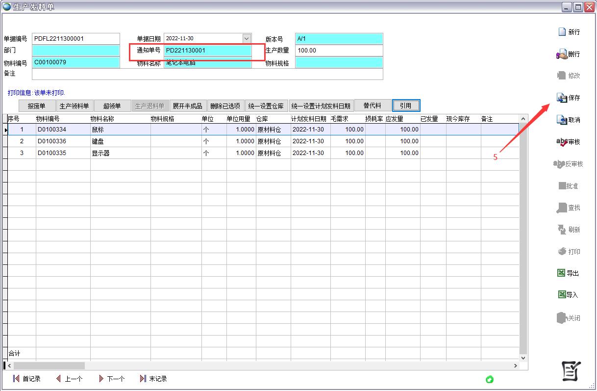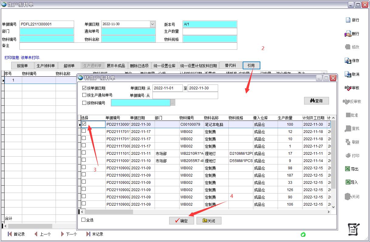 3、引用生產(chǎn)通知單做生產(chǎn)發(fā)料單