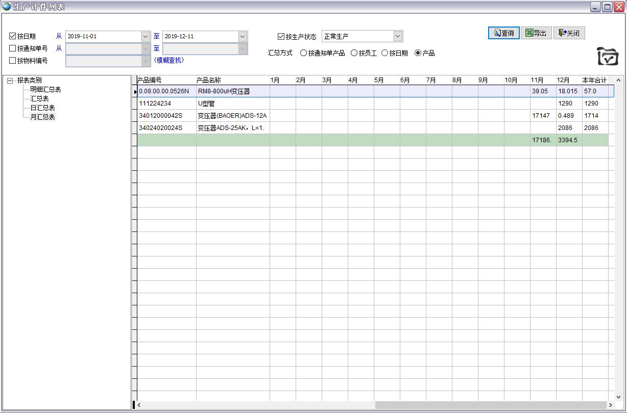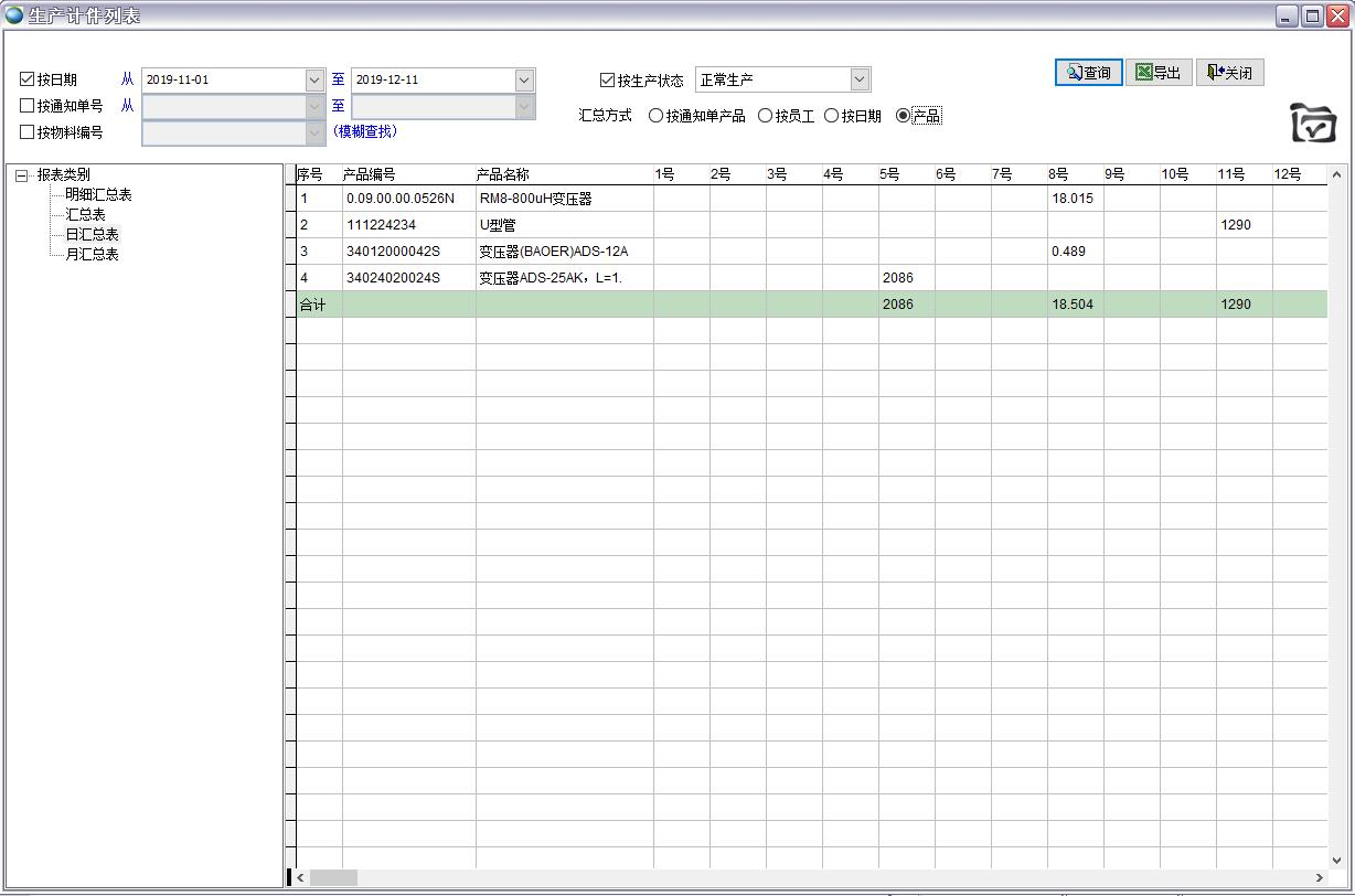 按生產(chǎn)通知單產(chǎn)品匯總