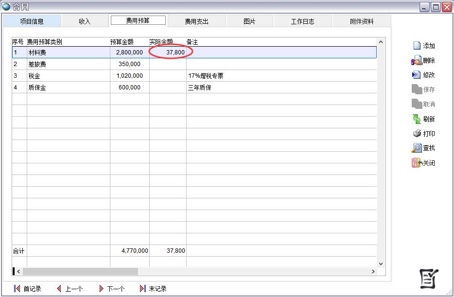 在合同費用預算類別中預先設置好預算類別,當實際費用支出后可以看到預算執(zhí)行情況