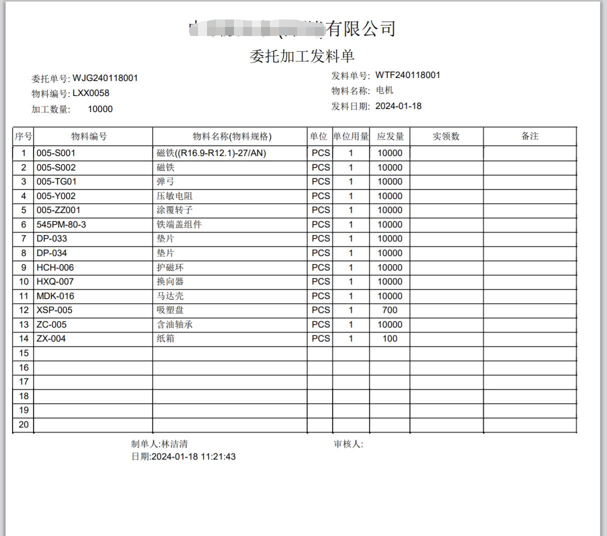 即材料出庫單,外發(fā)給加工商。通常會打印出來隨貨發(fā)給加工商