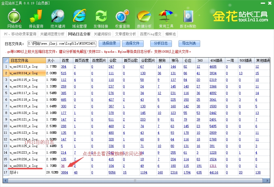 1、使用日志分析工具-金花站長工具