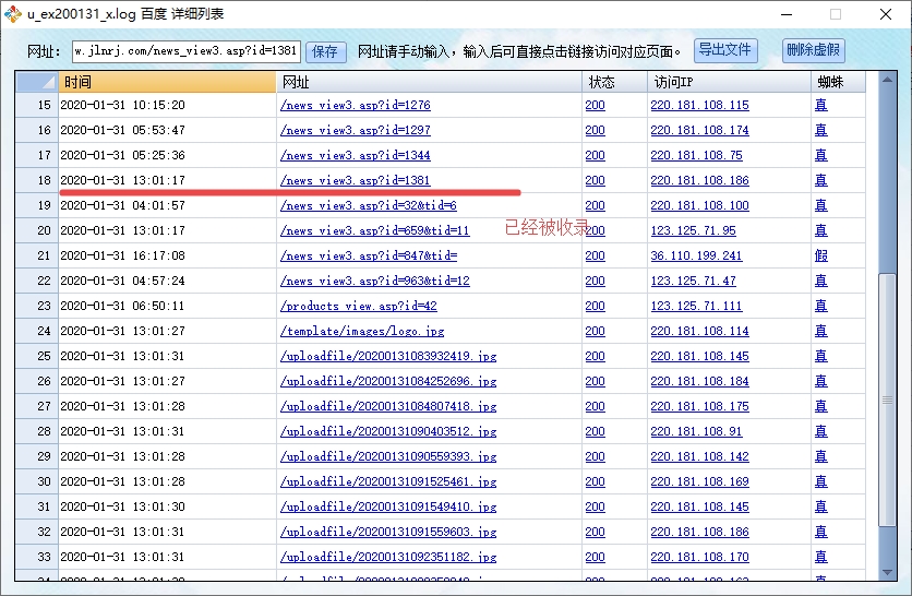 舉例1月31日發(fā)布文章網(wǎng)站優(yōu)化一-寫好title很重要,2月1日我查看網(wǎng)站日志看這篇文章是否被百度收錄了
