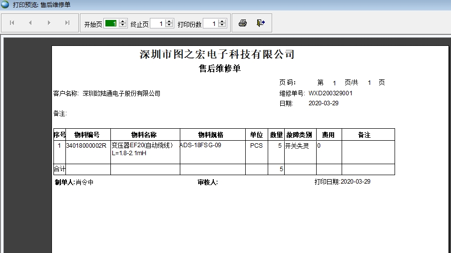售后維修單是用來記錄銷售給客戶的商品進行維修記錄的單據(jù)。售后維修單不僅可以記錄商品發(fā)生故障的原因,還可以記錄維修產(chǎn)生的費用、維修中領(lǐng)用的維修材料,可以做為向客戶收取維修費的憑證,也可以做為統(tǒng)計維修成本的憑證。