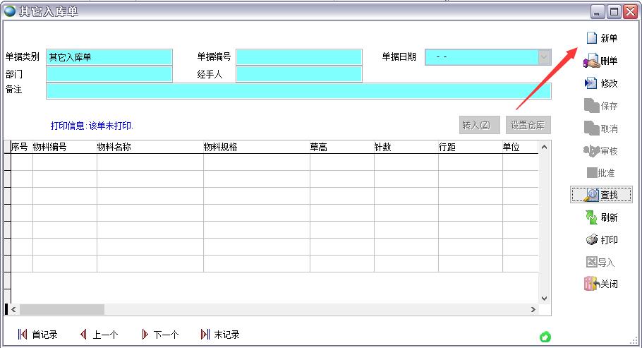 打開路徑:【主菜單】->【倉庫】->【入庫單】->【其它入庫單】