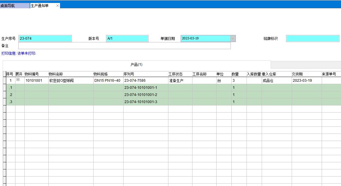 在巨靈鳥ERP中,產(chǎn)成品的序列號是在做生產(chǎn)通知單時自動生成,原材料的序列號是在入庫時自動生成。