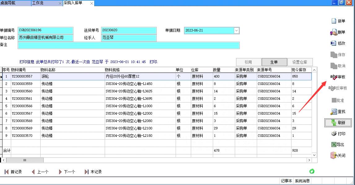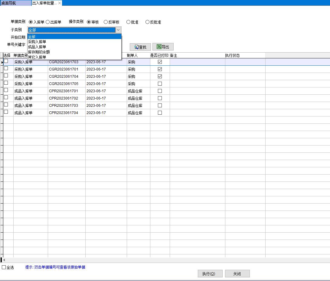 出入庫批量審核可以一次性對多個出庫單、入庫單進行審核、批準或反審核、反批準操作