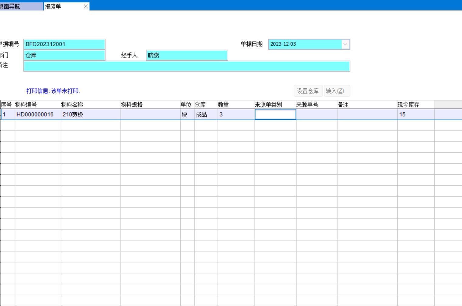 打開路徑:【主菜單】-【倉庫】-【報廢】 -【報廢單】