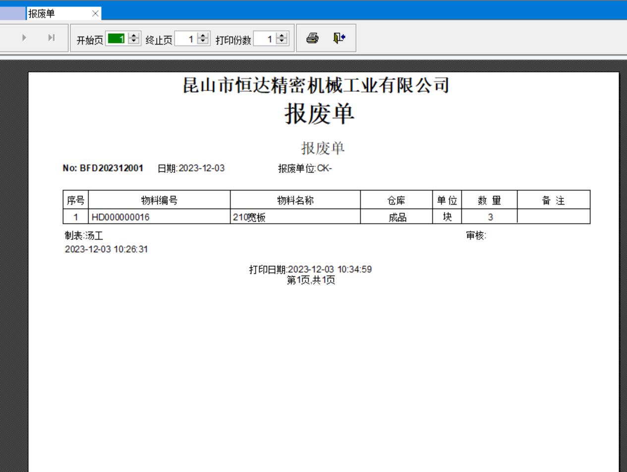 報廢單是出庫單,報廢單完成后庫存數(shù)量會減少