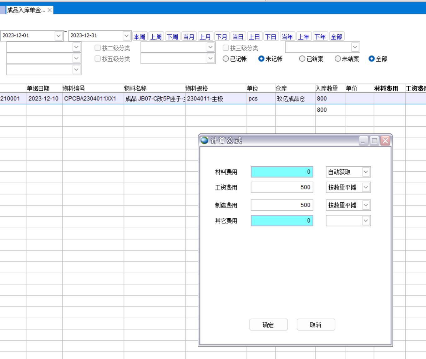 打開路徑:【主菜單】-【存貨核算】-【成品入庫單金額維護】
