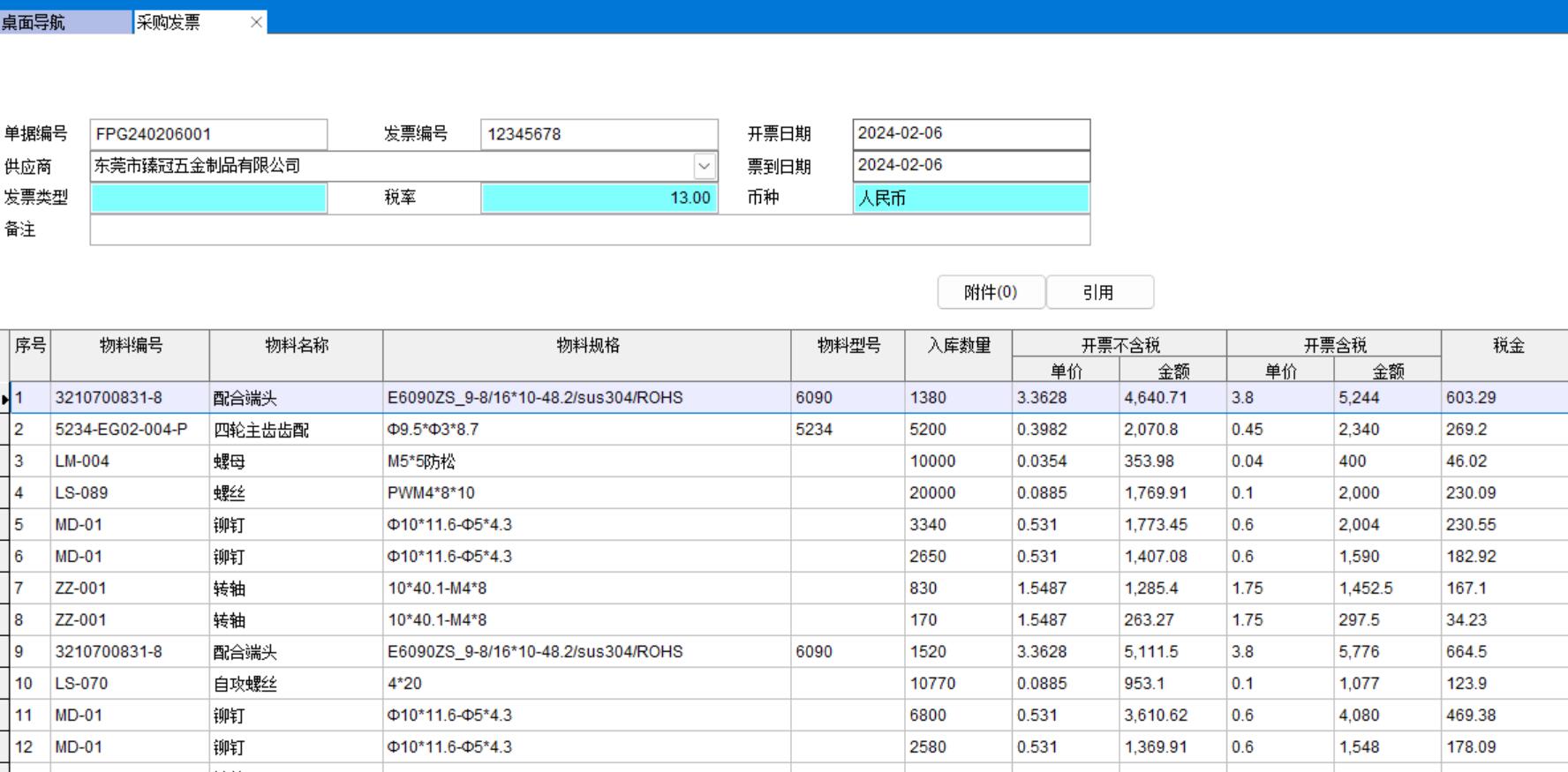 2、引用供應(yīng)商對(duì)帳單做采購(gòu)發(fā)票