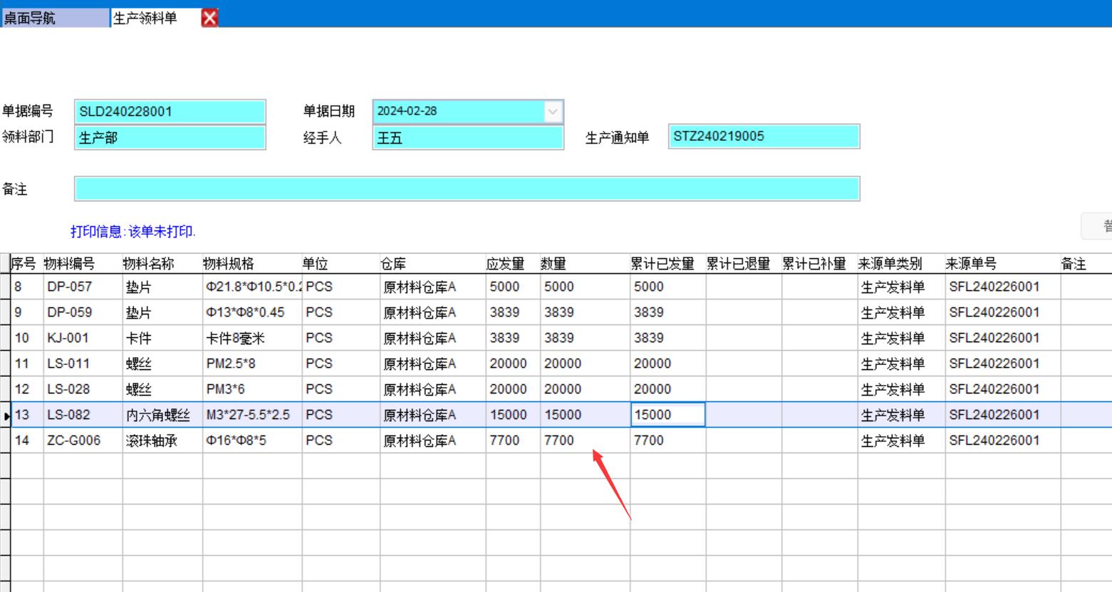 生產(chǎn)實(shí)際需求數(shù)量是7678個,但是系統(tǒng)會按50的整數(shù)倍計算得出應(yīng)發(fā)數(shù)量7700,倉庫實(shí)際發(fā)給車間7700個,剩余22個就在車間,系統(tǒng)在下個生產(chǎn)發(fā)料單時會先扣除這22個再計算還要給車間領(lǐng)多少料。