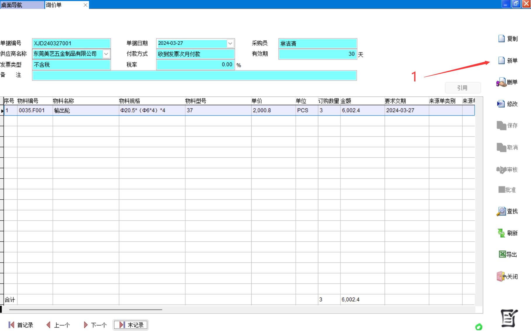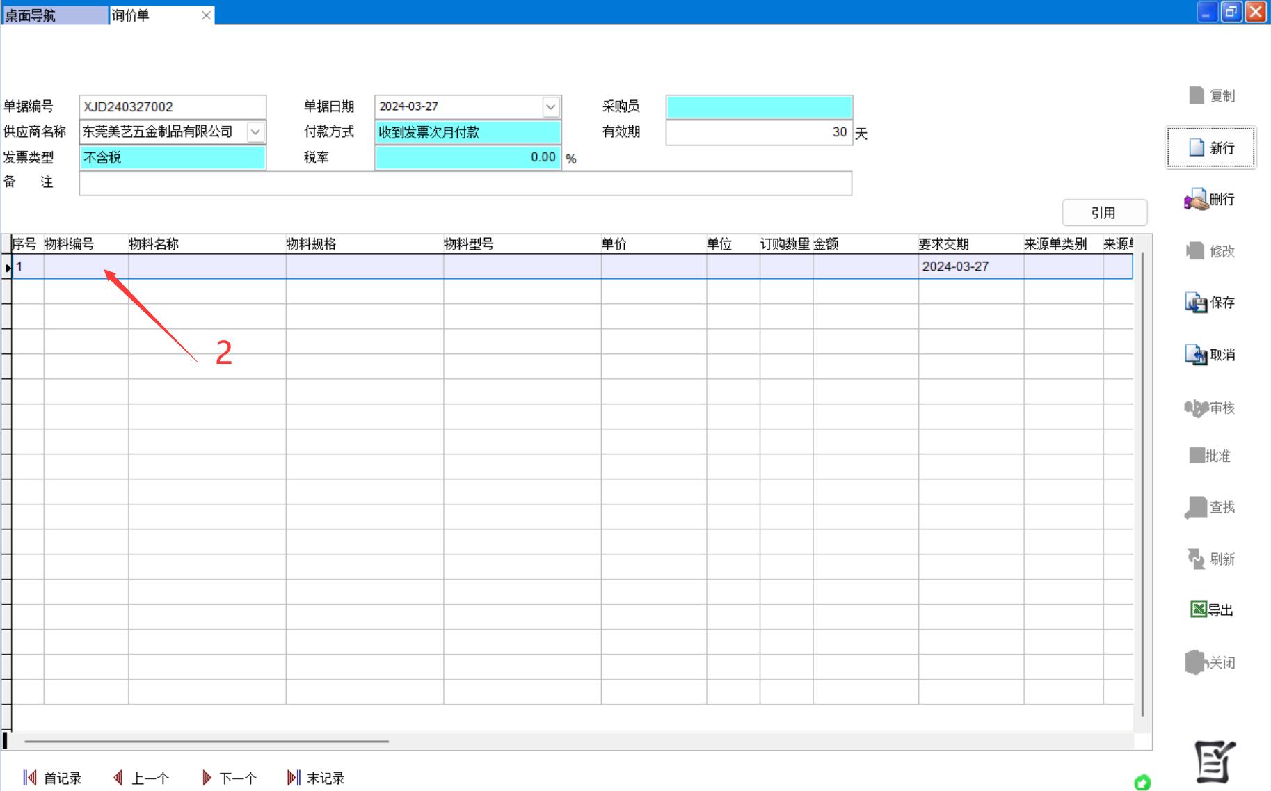 打開路徑:【主菜單】-【采購】-【詢價(jià)單】
