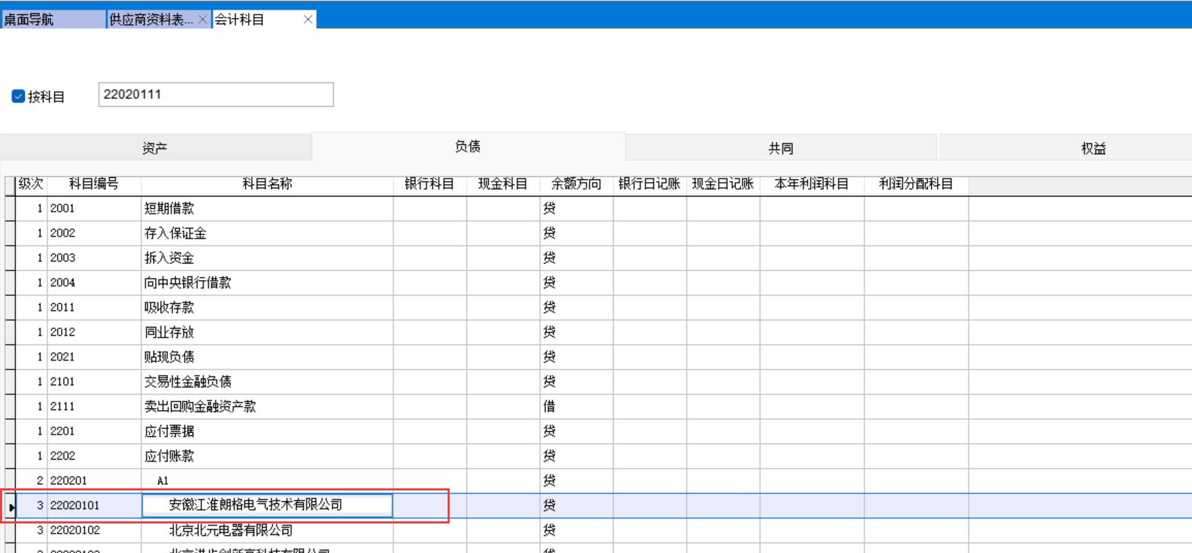 配置文件中勾選新建供應商時自動生成應付賬款貸方科目,設置后當新建供應商時會自動生成三級科目