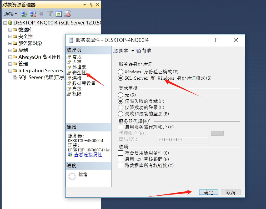 重新打開SQL管理器,用服務(wù)器名稱改為IP地址,身份驗(yàn)證改為SQL SERVER身份驗(yàn)證,使用管理員賬號(hào)登錄