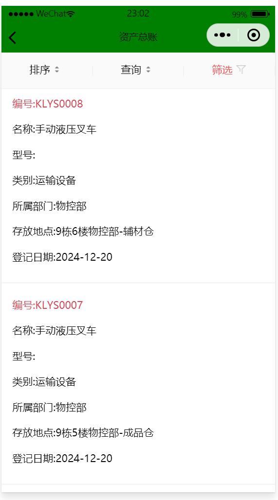 資產(chǎn)總賬可以通過(guò)類(lèi)別、歸屬部門(mén)、狀態(tài)(正常、維修、報(bào)廢)、資產(chǎn)名稱(chēng)、資產(chǎn)編號(hào)進(jìn)行查詢(xún)。