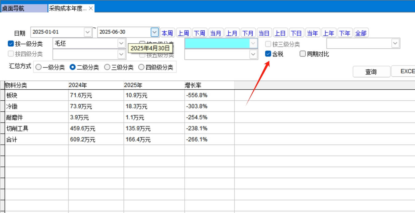 打開路徑:【主菜單】-【采購】-【報表】 -【采購成本年度對比】