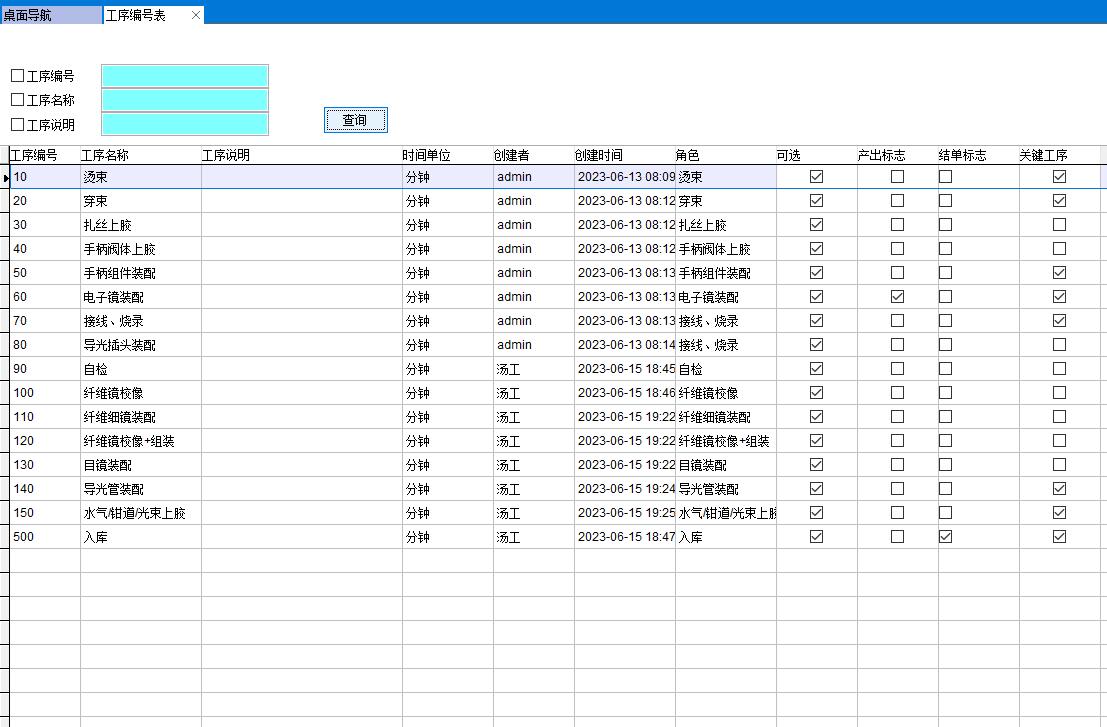 記錄每個產(chǎn)品的工序名稱、工序順序、工時等信息