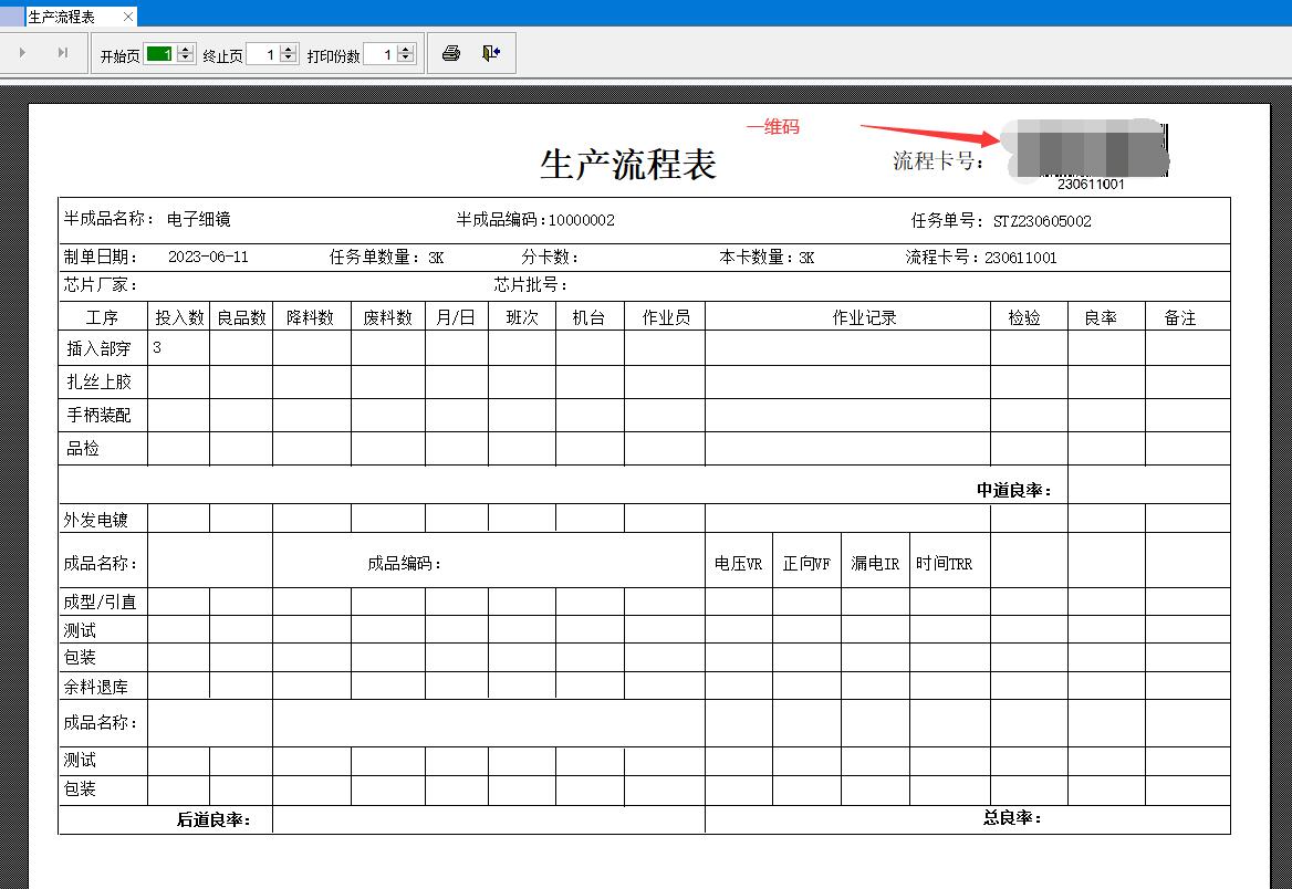 點生單生成流程卡,如上圖所示生產(chǎn)3個產(chǎn)品,就會生成3個流程卡