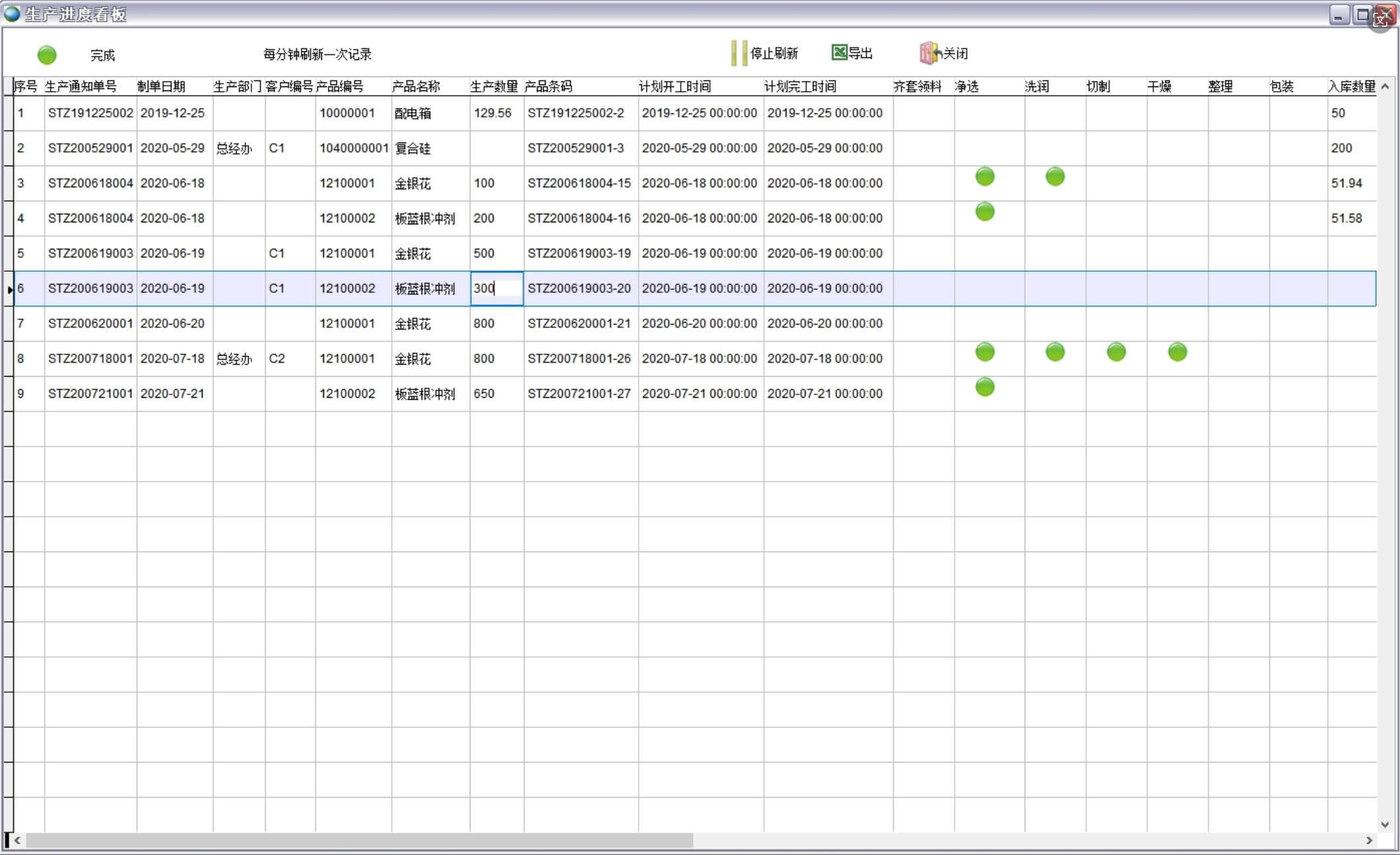當(dāng)日、昨天、本周上周稼動(dòng)率