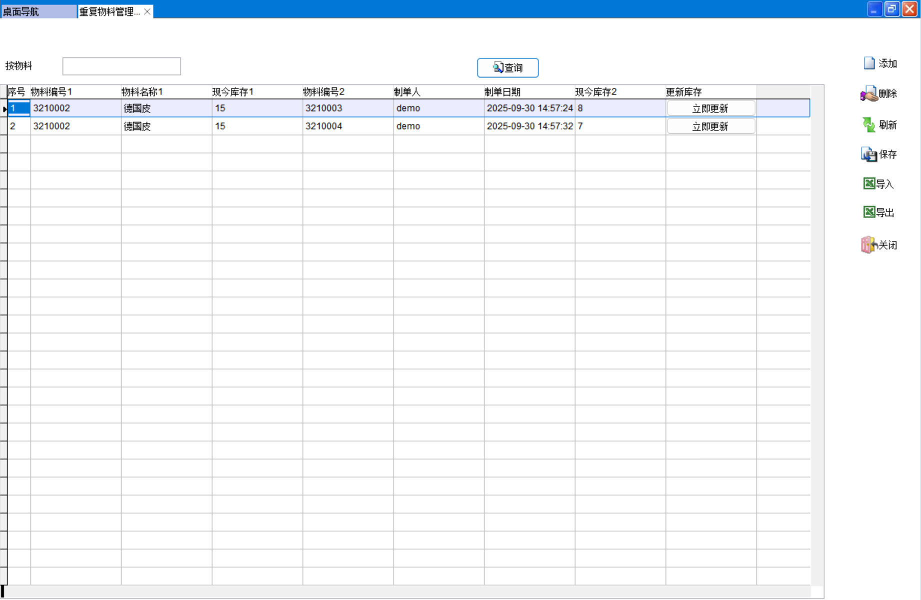 3、在物料編號2上直接輸入物料編號或雙擊選擇一個物料,物料編號2和物料編號1就是重復(fù)的物料