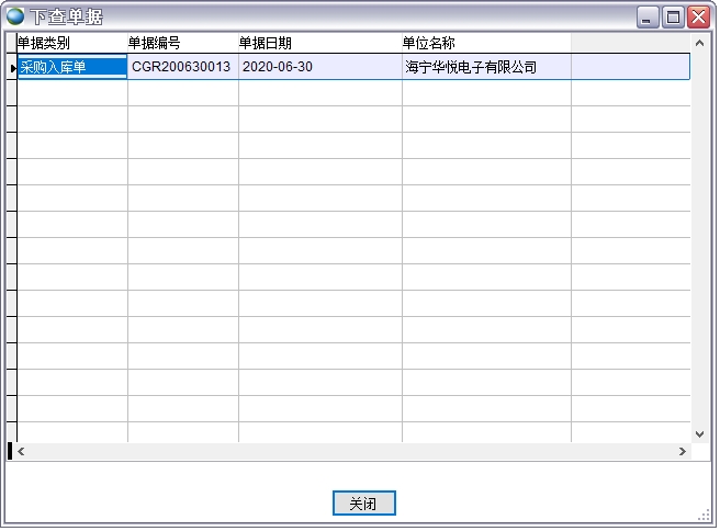 點(diǎn)擊下查單據(jù)顯示該采購單的下級(jí)單據(jù)