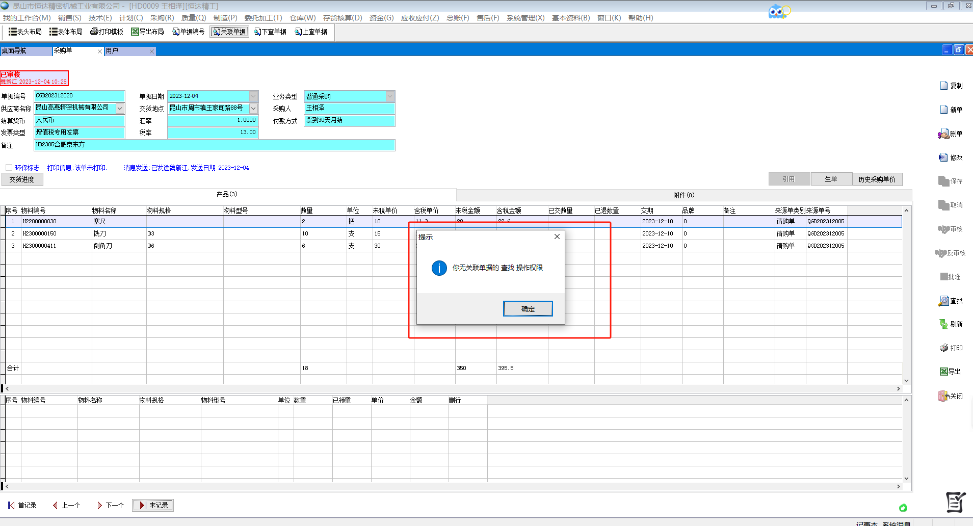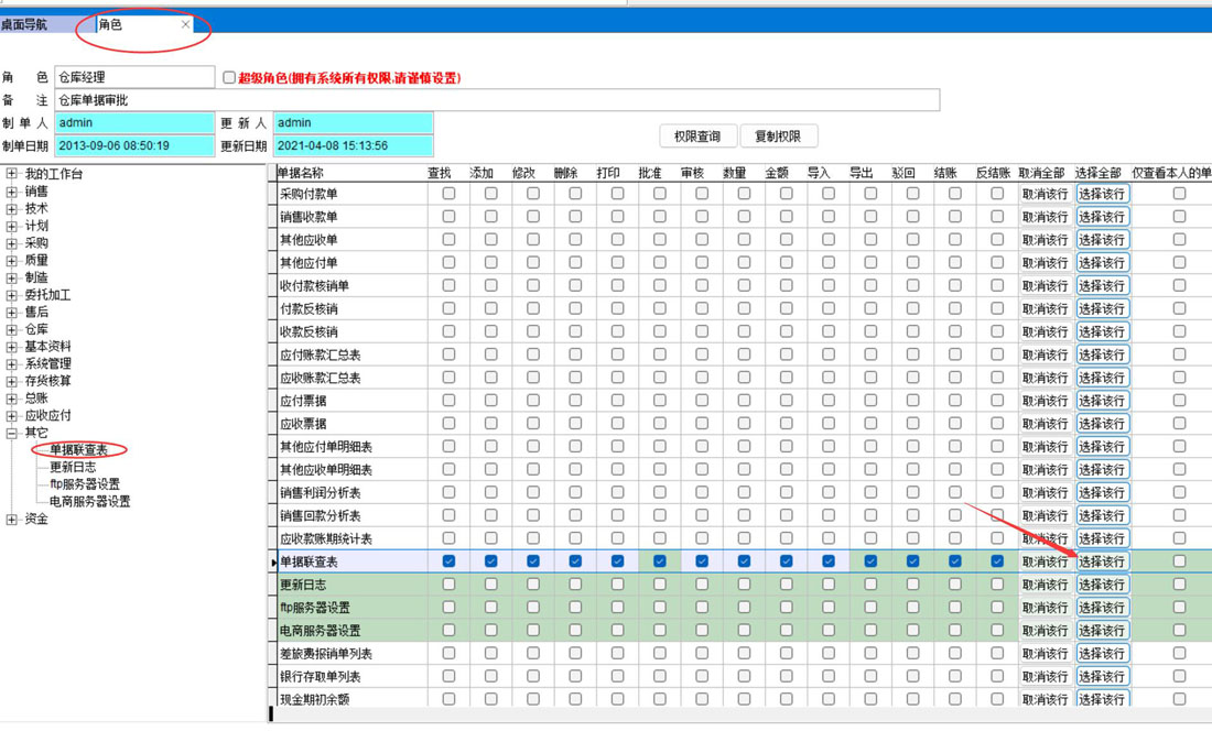 如果提示沒有關(guān)聯(lián)單據(jù)權(quán)限,在系統(tǒng)管理-權(quán)限-角色中設(shè)置