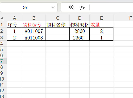 導(dǎo)入格式如下,物料編號必須是ERP中存在的