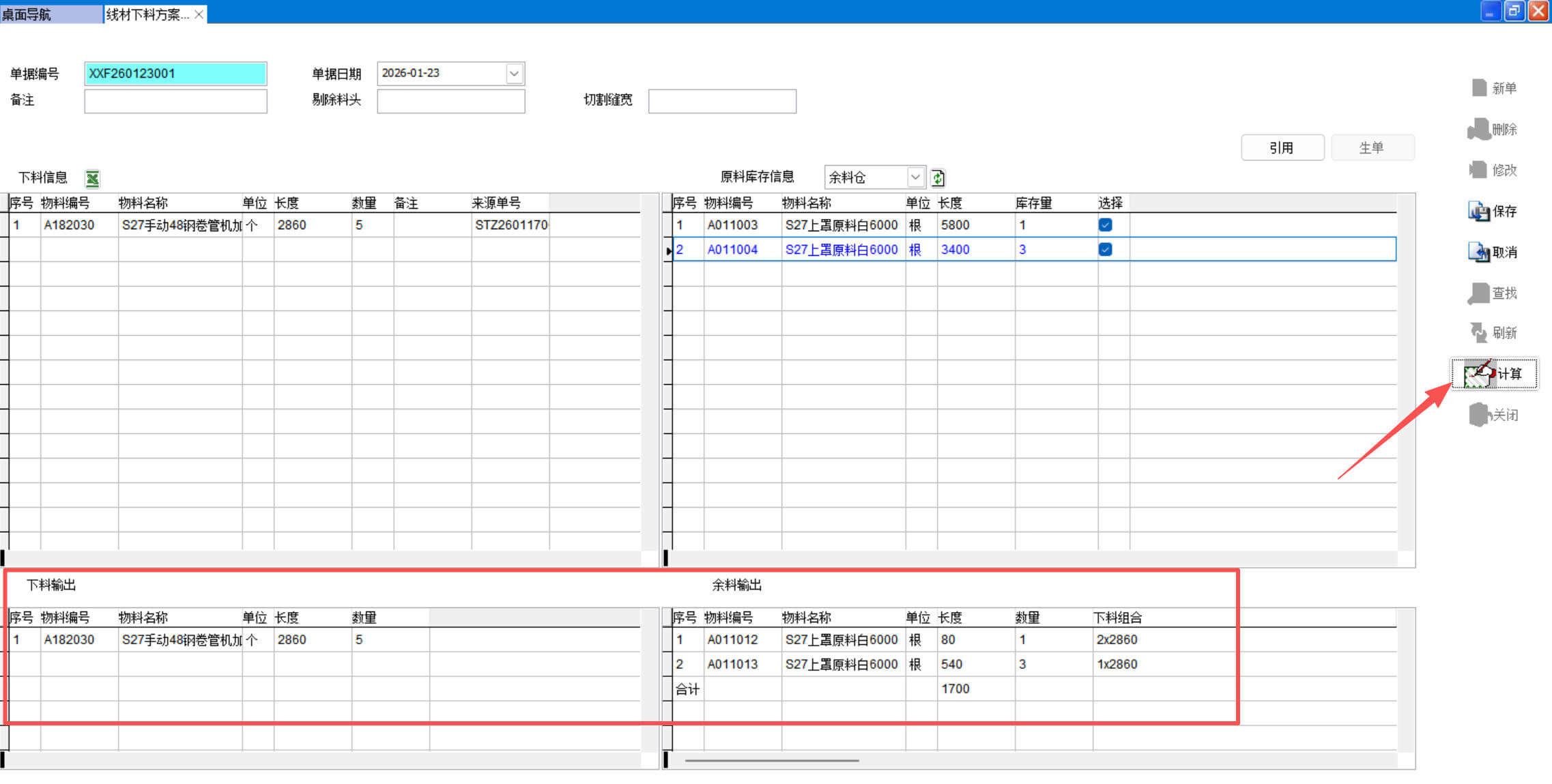 打開路徑:【主菜單】-【制造】-【線材下料方案】