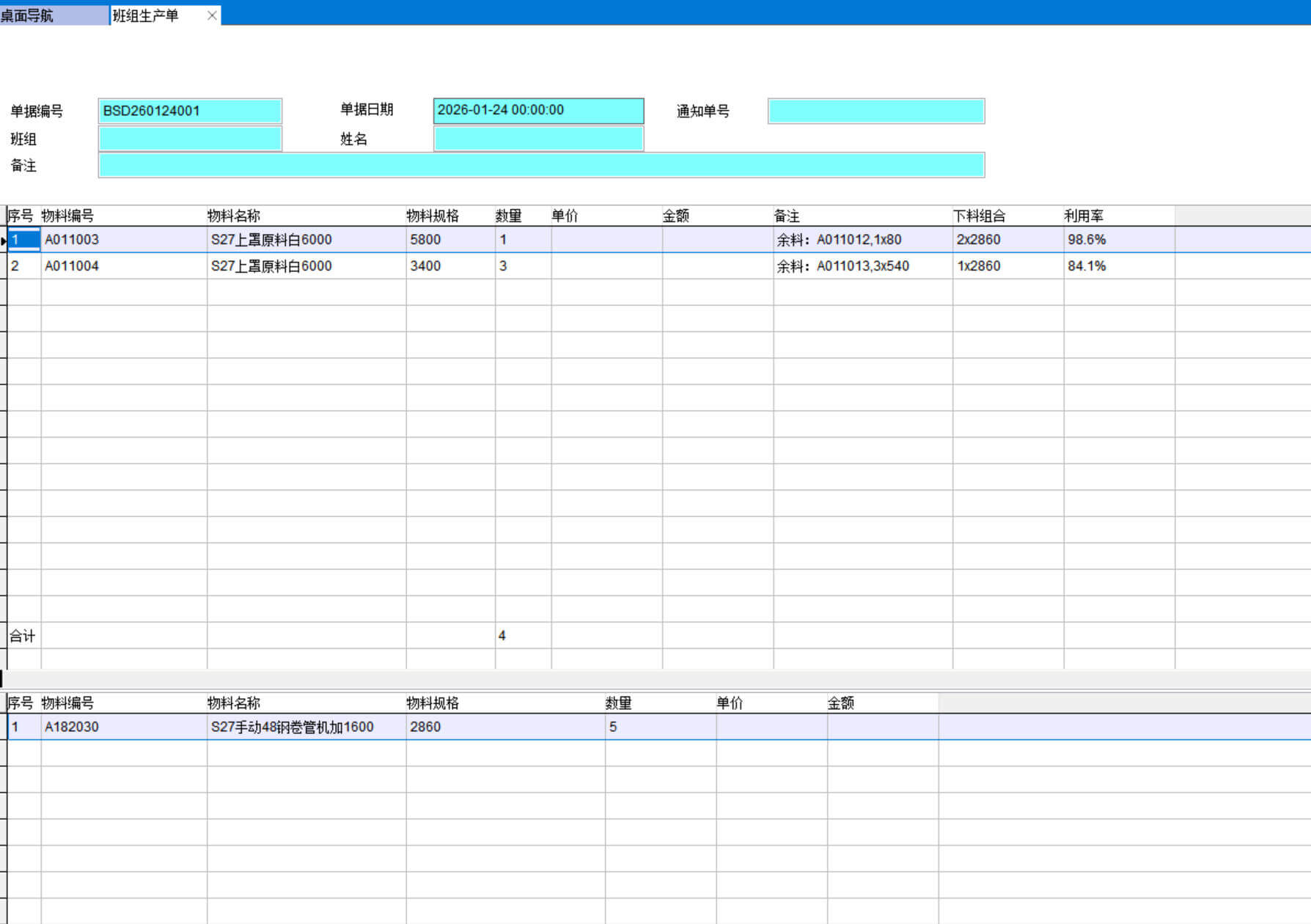 2、下料信息輸入