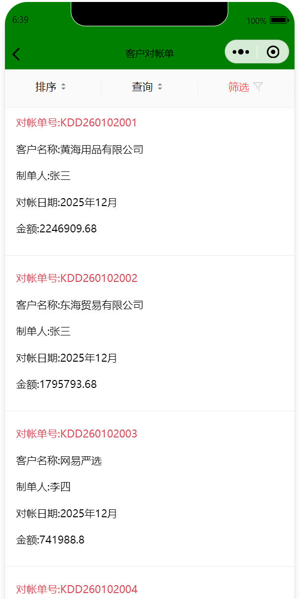 總結(jié):客戶對帳單是在PC端ERP中建立,數(shù)據(jù)實時同步到手機端,用手機查看客戶對帳單是方便移動用戶快速瀏覽、審批客戶對賬單
