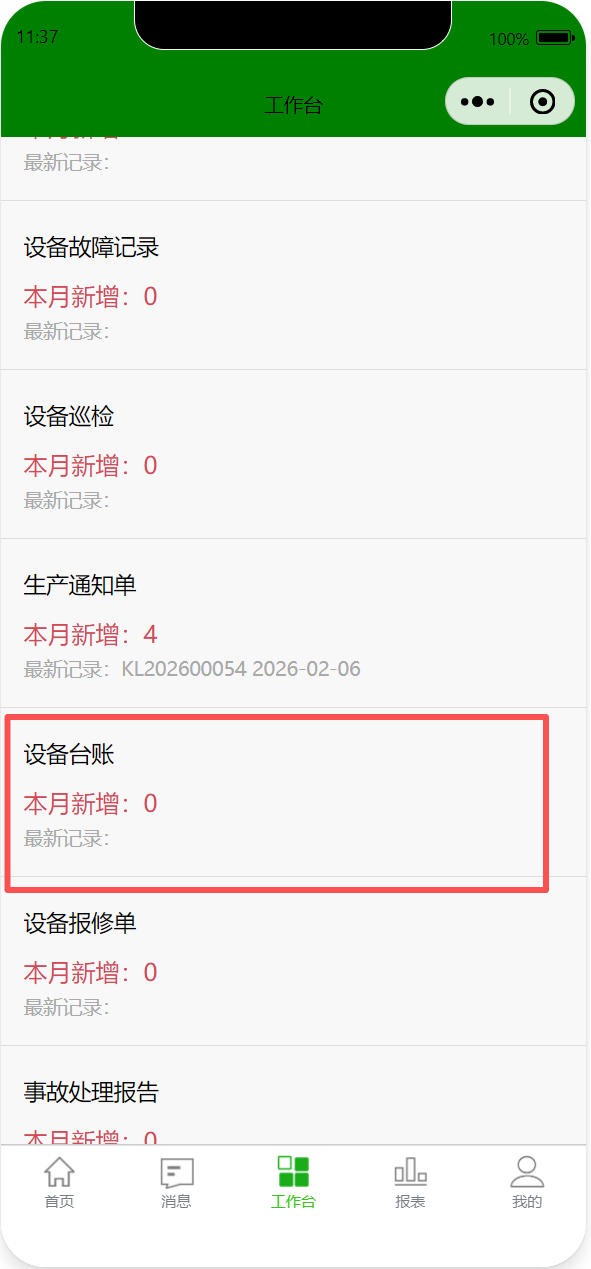 打開路徑:【首頁(yè)】-【工作臺(tái)】-【生產(chǎn)】-【設(shè)備臺(tái)賬】