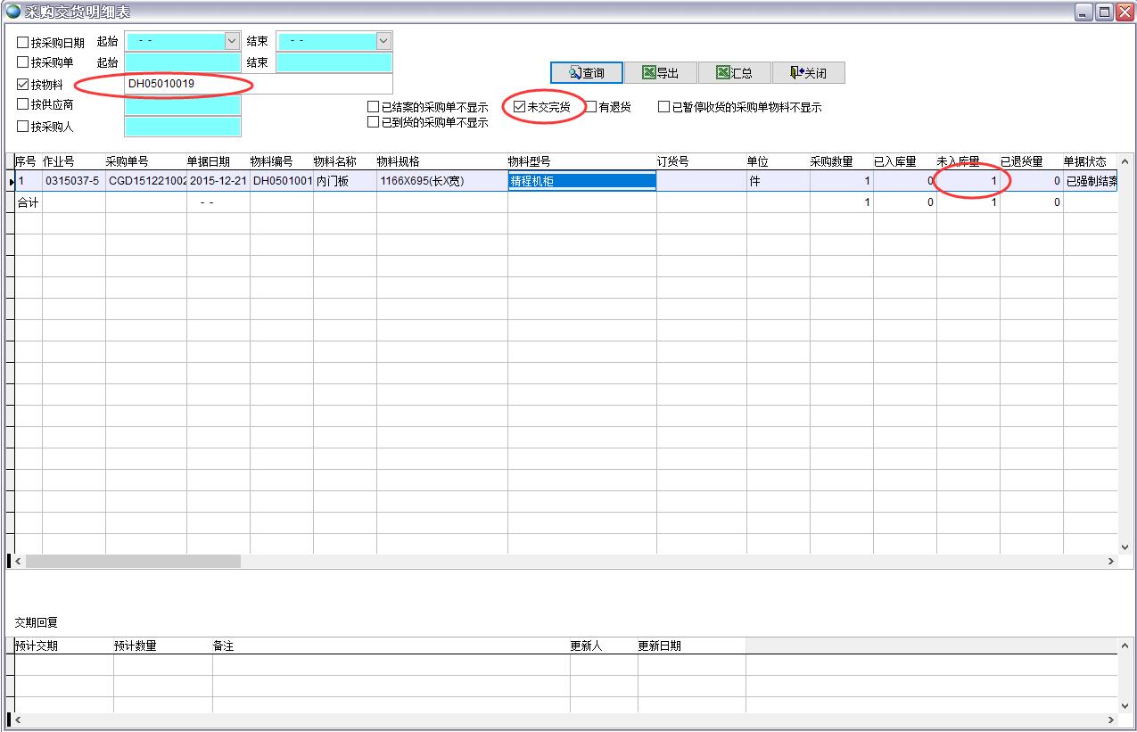 采購未交量不能通過雙擊查看未交量明細(xì),可以通過采購交貨明細(xì)表來查詢