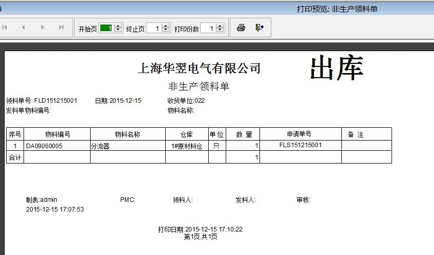打開路徑:主菜單->倉(cāng)庫(kù)->出庫(kù)單->非生產(chǎn)領(lǐng)料單