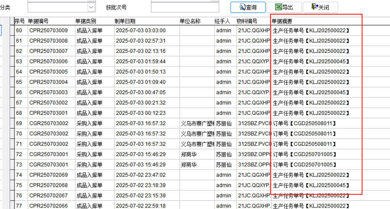 表格中白色是入庫(kù)單記錄,綠色是出庫(kù)單記錄