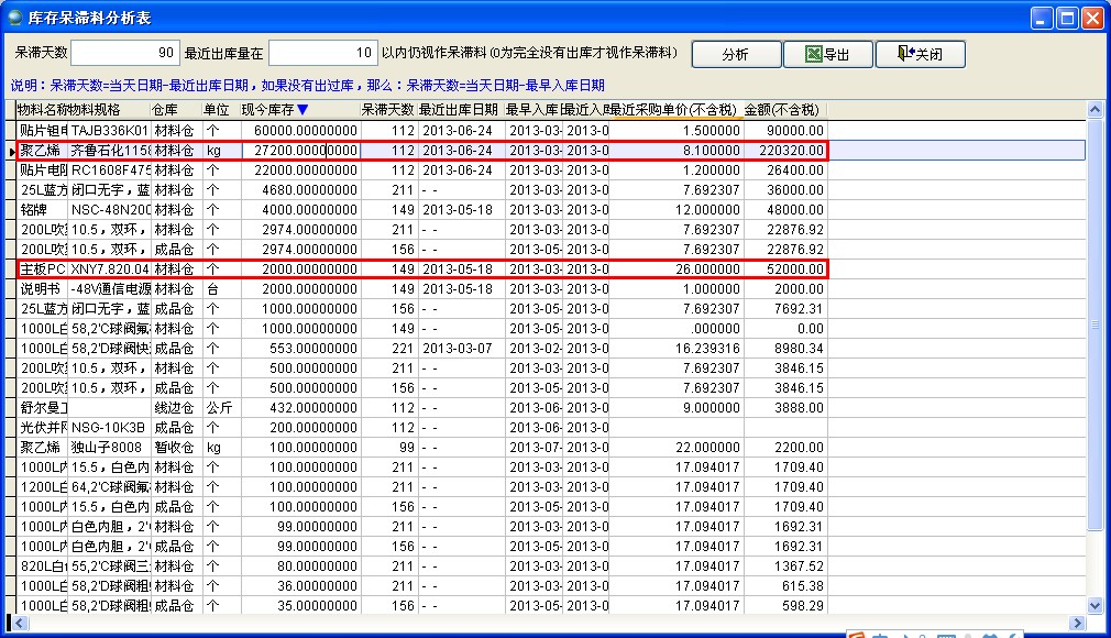 1、先設(shè)置呆滯天數(shù)90天,表示在倉庫存放時(shí)間超過90天為呆滯料。