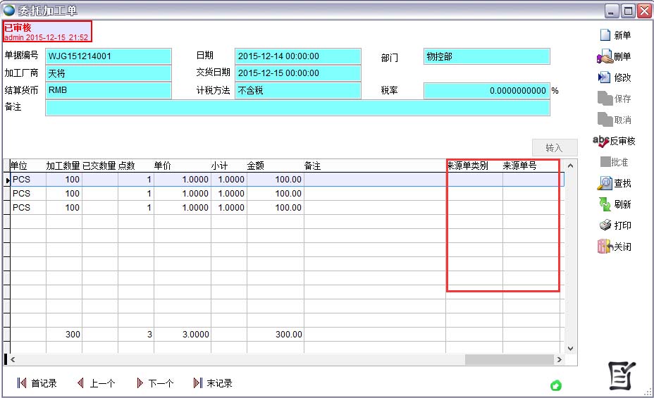 可以轉(zhuǎn)入客戶(hù)訂單、主生產(chǎn)計(jì)劃、委托加工申請(qǐng)單生成委托加工單