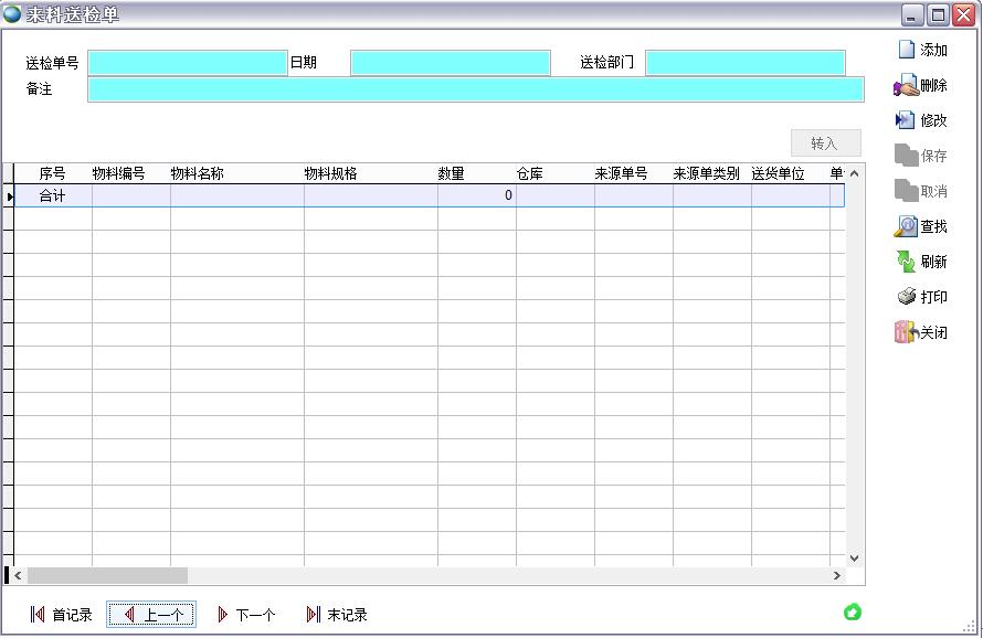 打開路徑:【主菜單】->【質(zhì)量】-> 【來料送檢單】 -> 【來料送檢單】