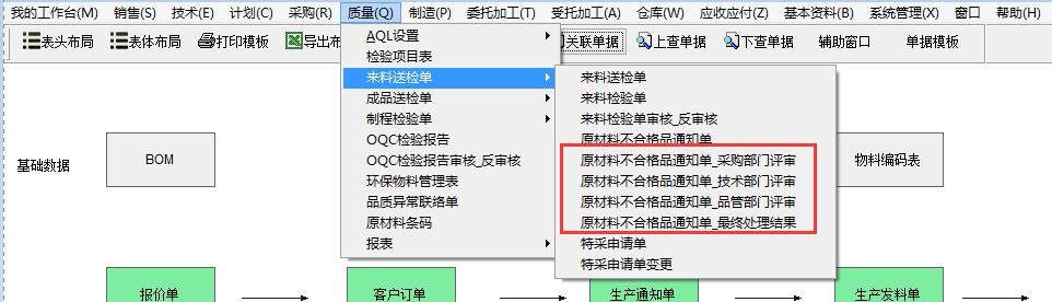 原材料不合格品通知單生成后需要經(jīng)過相關(guān)部門的評審,在權(quán)限設(shè)置中為相關(guān)部門開通單據(jù)的權(quán)限。