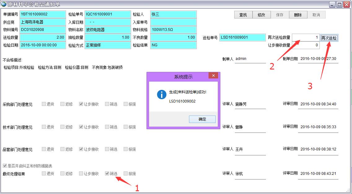 當(dāng)最終處理結(jié)果是篩選時,可以再次送檢。