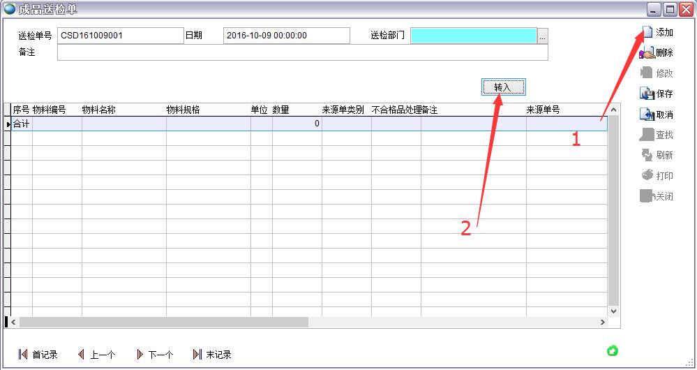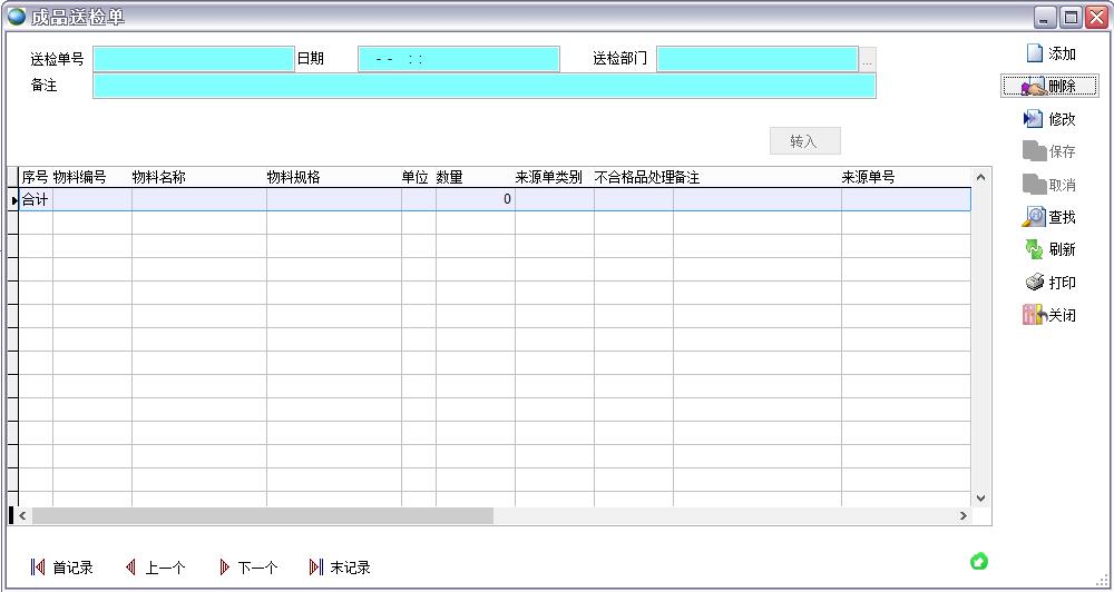 打開路徑:主菜單->質(zhì)量->成品送檢單->成品送檢單