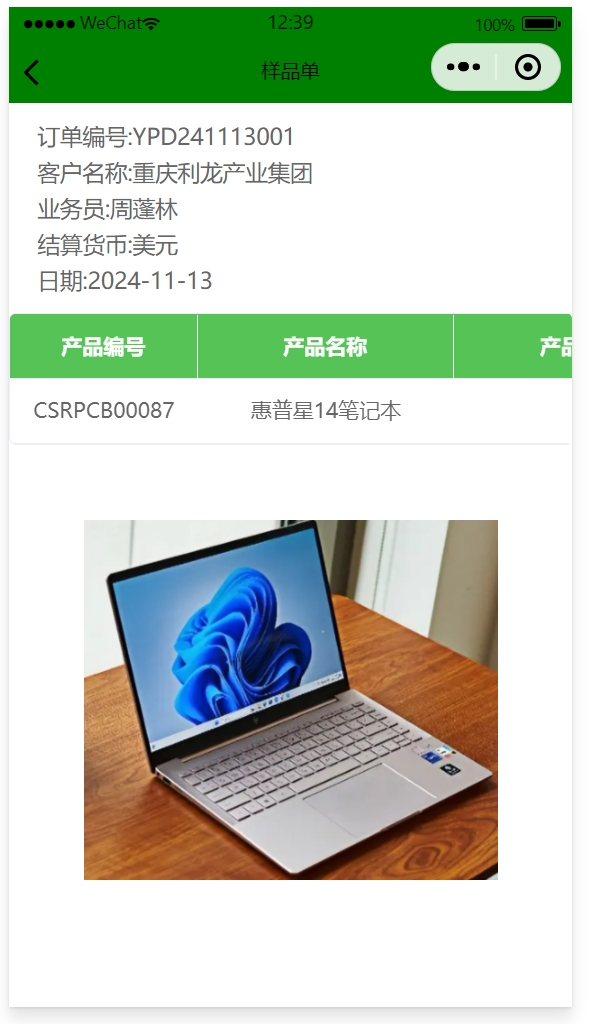 附件 單據(jù)在修改狀態(tài)下可以上傳附件 審批流程 如果需要進(jìn)行多人審批的話可以在工作流中進(jìn)行設(shè)置 自由項(xiàng)設(shè)置 上圖表中用到了寬、長(zhǎng)、草高、針數(shù)、行距、底布要求、背膠、草絲等列,默認(rèn)是沒(méi)有這些列的,可以通過(guò)表體布局進(jìn)行設(shè)置 樣品單的業(yè)務(wù)流程: 有庫(kù)存:樣品單->發(fā)貨安排表(可選)->銷售發(fā)貨單 需要生產(chǎn):樣品單->生產(chǎn)通知單->成品入庫(kù)單->發(fā)貨安排表(可選)->銷售發(fā)貨單 結(jié)算貨幣 如果結(jié)算貨幣是外幣,那么下面的單價(jià)和金額也是外幣 在樣品單列表中可以看到外幣與本幣的單價(jià) 手機(jī)端 在手機(jī)端也能看到樣品單,數(shù)據(jù)與PC端實(shí)時(shí)同步 如果該產(chǎn)品有圖片的話還可以顯示圖片