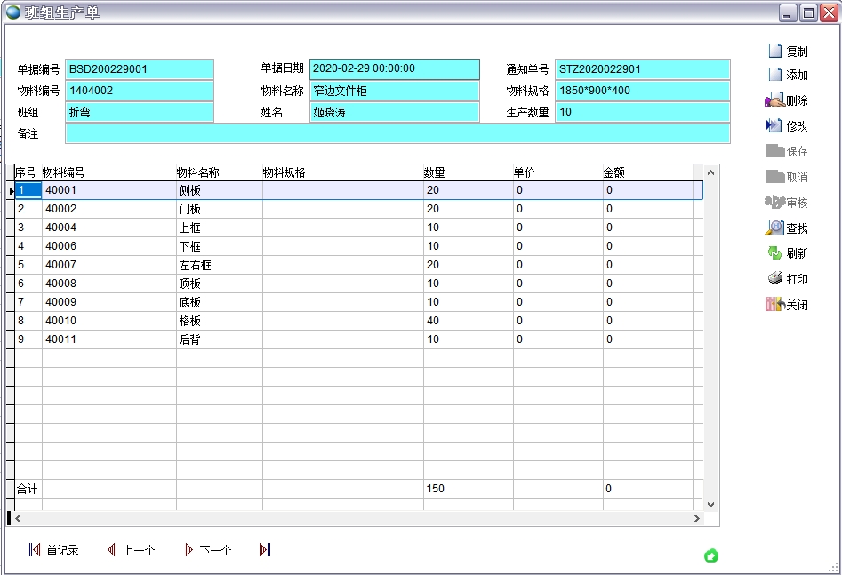 b、班組生產(chǎn)單