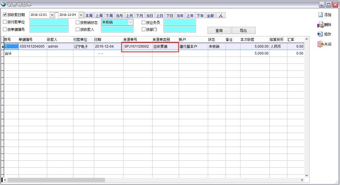 打開路徑:【主菜單】->【應(yīng)收應(yīng)付】-> 【應(yīng)收】 -> 【應(yīng)收票據(jù)】