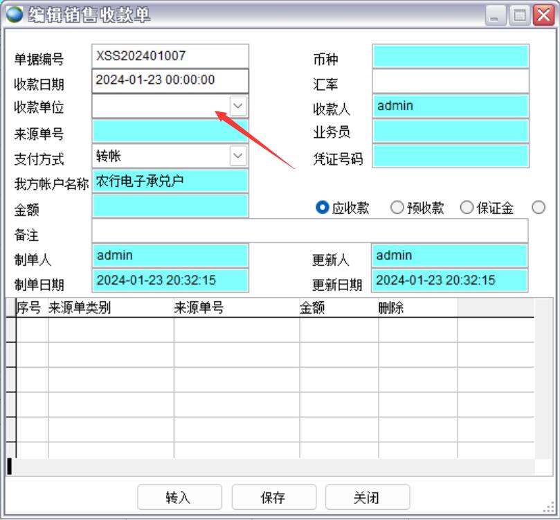 銷售收款單需要選擇收款賬戶