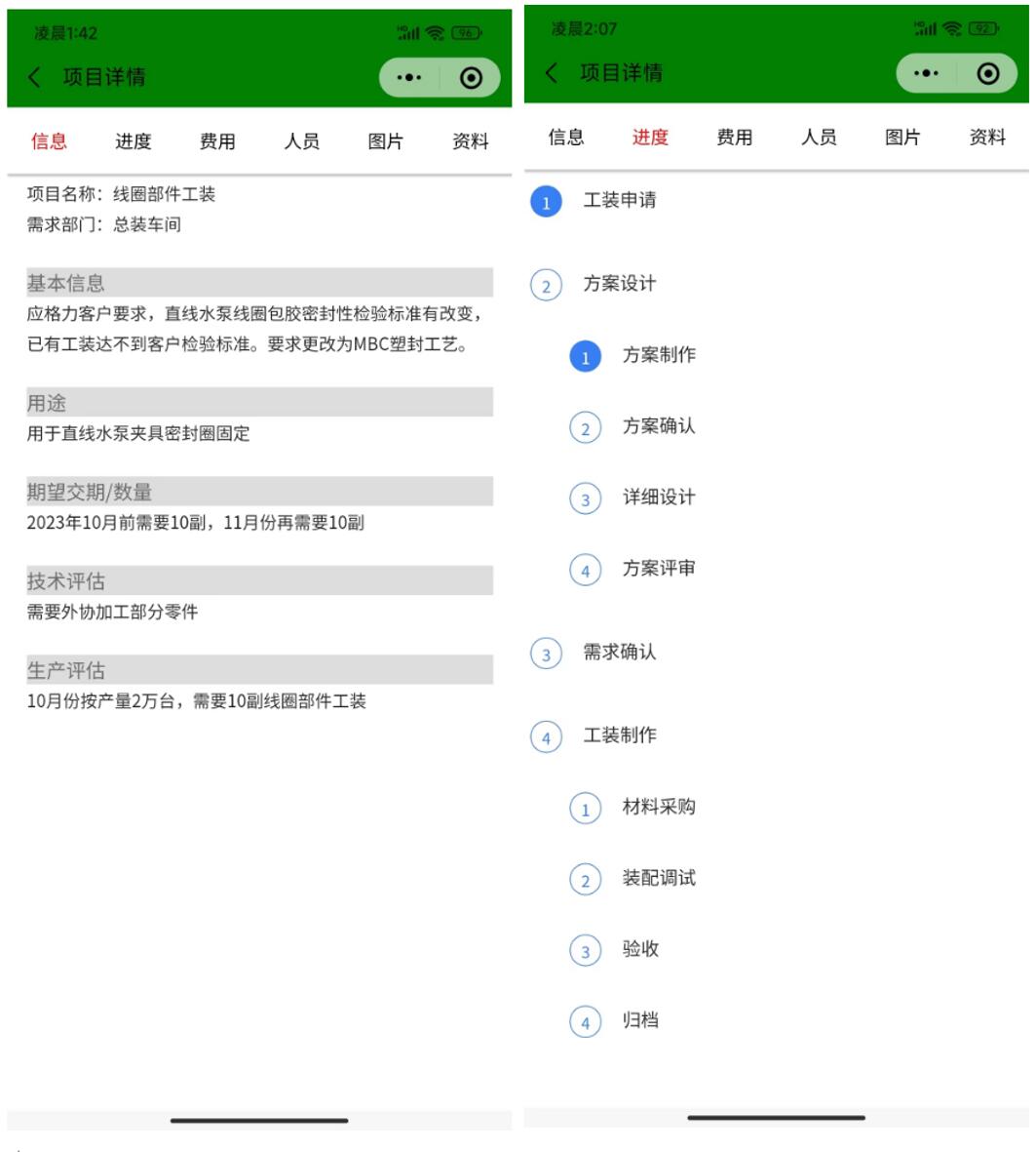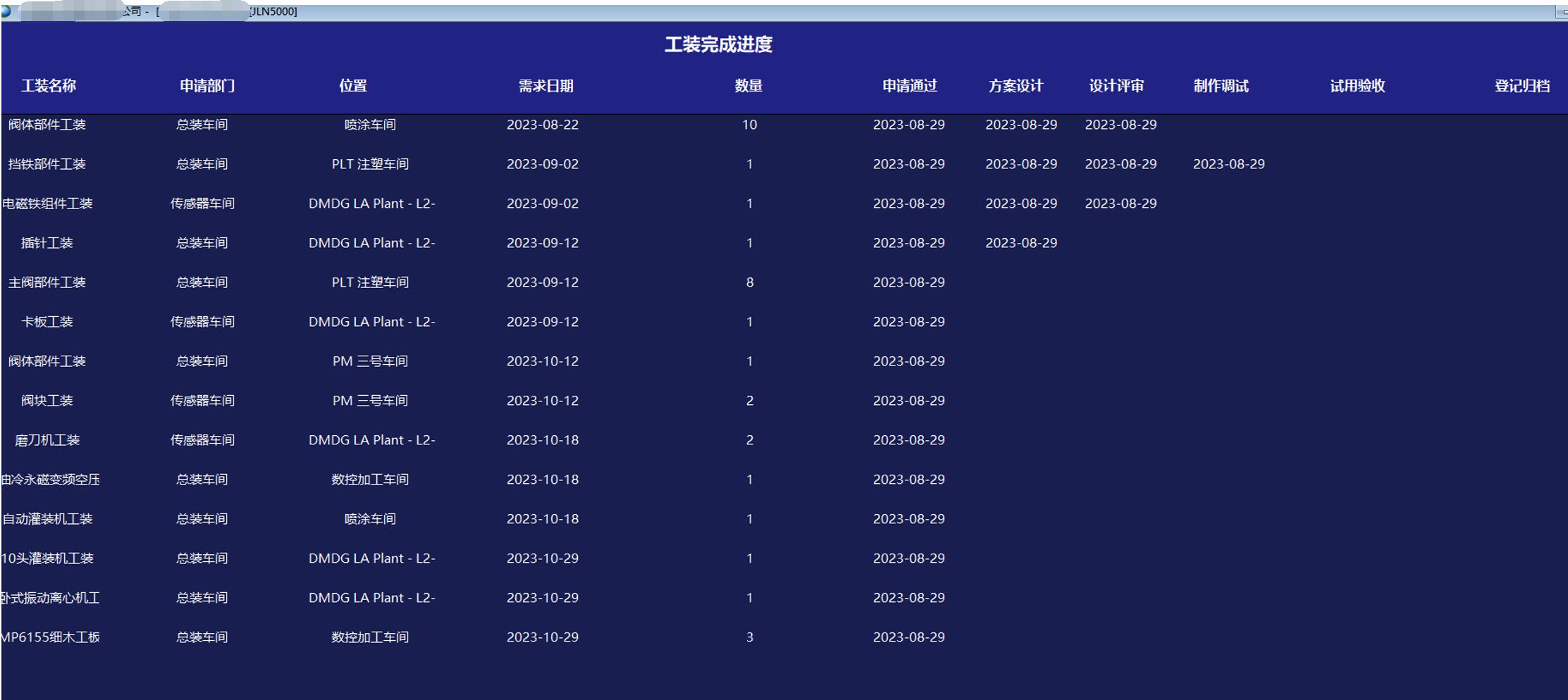 對工裝治具的制作采用項目化管理,從項目需求、項目確立、任務(wù)分配、進度、費用支出、項目驗收全流程管理。